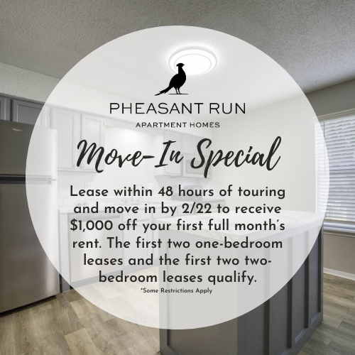 Discover the exceptional lifestyle offered at Pheasant Run Apartments, where a harmonious blend of livability and comfort awaits. Situated conveniently near Highway 291, our community is just minutes away from downtown Lee's Summit and a variety of shopping centers. Our professional staff provides prompt and courteous service. Our residents can always take advantage of our outstanding amenities, including a 24-7 fitness center, five picnic areas complete with grilling stations, and a relaxing swimming pool. Come visit us today and see why our residents love calling Pheasant Run home!